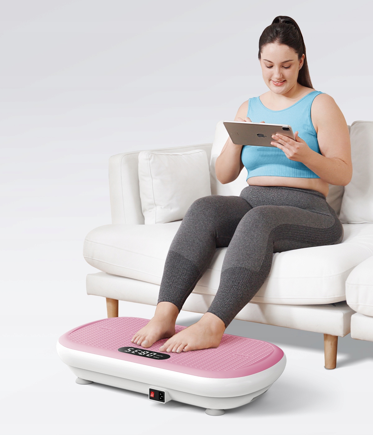 Віброплатформа виявляє присутність користувача за допомогою інтелектуального датчика: вона запускається автоматично, коли користувач на неї стає, і зупиняється після 30 секунд простою з міркувань безпеки.